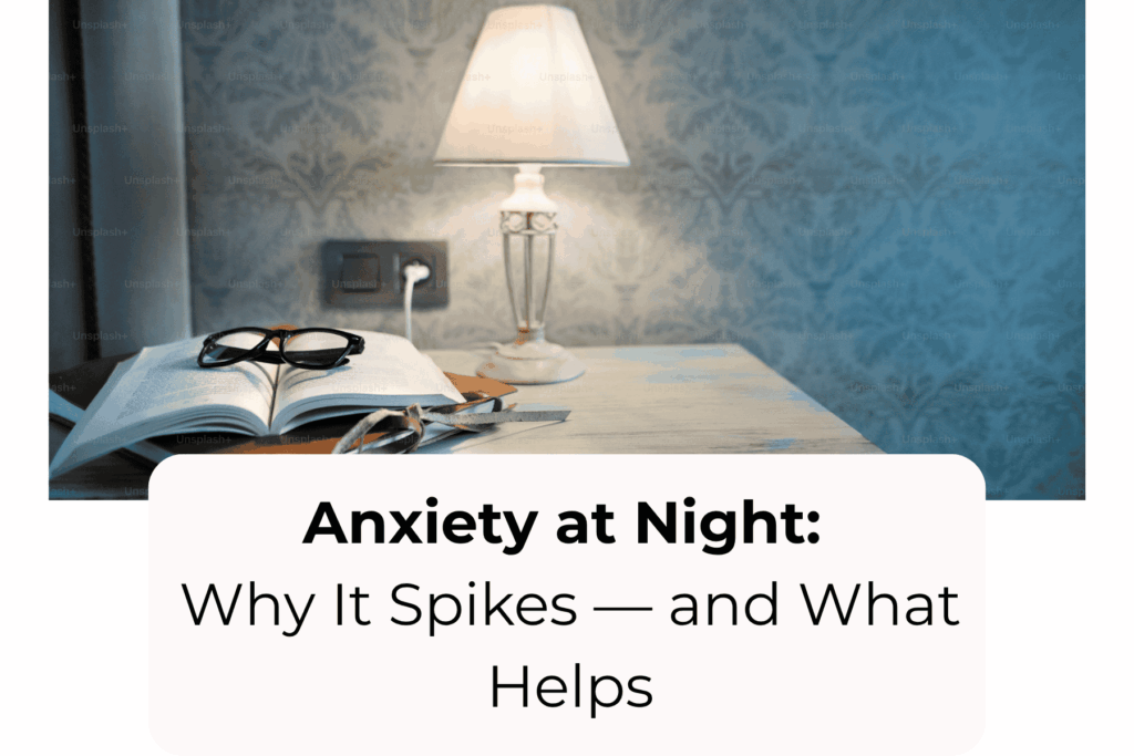Anxiety at night hits harder because the brain has fewer distractions and worries get louder. Light/sleep-cycle shifts can keep your body “on,” making calm feel out of reach. We have 5 different strategies here to help you feel better at night when the anxiety spikes.
